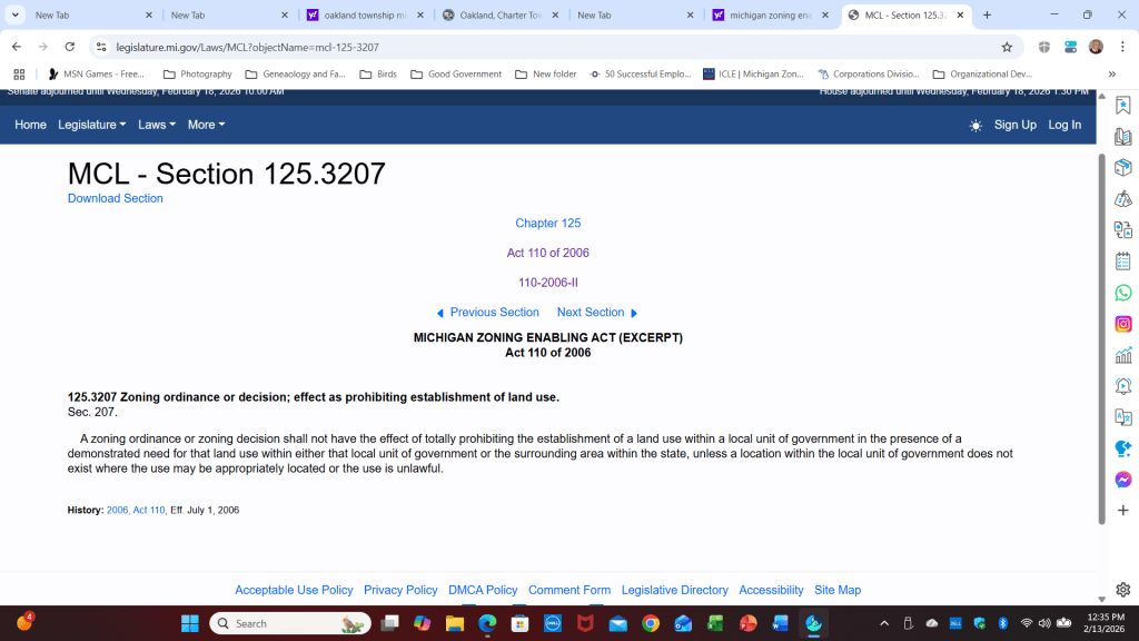 The Michigan Zoning Enabling Act 110 of 2006 https://www.legislature.mi.gov/Laws/MCL?objectName=mcl-Act-110-of-2006 leaves a nice loophole for anyone wanting to build something we don’t want in our township. I don’t understand it very well. Perhaps someone will explain it at the March 3 hearing on zoning ordinance changes regarding Data Centers?