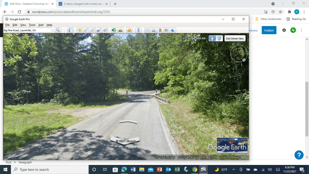 Here is backroad, Big Pine Road, on the way our rented cottage. Sound asphalt pavement, Google-earth does onto go all the way to our cottage, but road was the same quality.