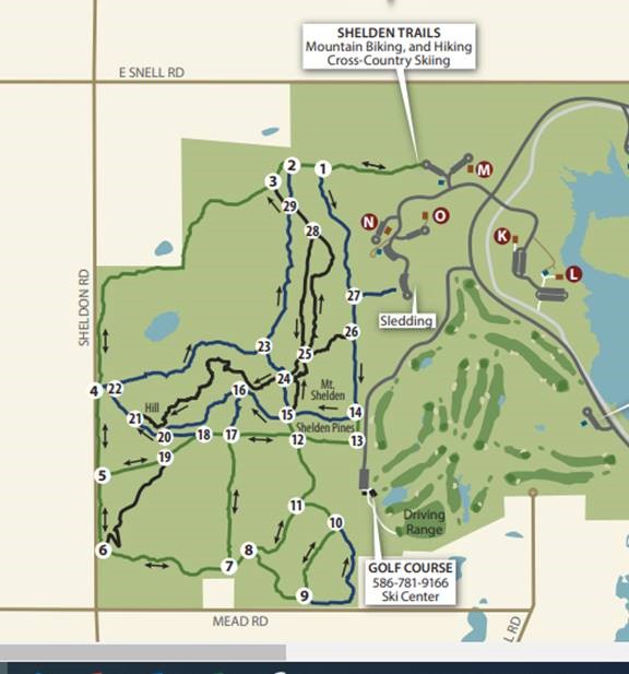 Did you know we have a very extensive and challenging mountain biking trail area within our township? The Shelden Trails are east of Shelden Road and south of Mead Road. They are 100% within the boundaries of Oakland Township. These can be accessed from inside Stony Creek Metropark (Parking areas M or N on the map segment below) or a somewhat secluded entrance (no parking) off Shelden Road at #4 on the map below. You can also bike to the park on safety paths and sidewalks (Dequindre), as I do, taking Paint Creek Trail to Clinton River Trail to Dequindre, north on the sidewalk to a somewhat hidden paved path leading east to the Park entrance. It 11 miles from my house to the entrance.